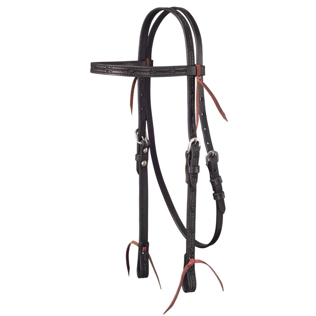 Tough-1 Leather Straight-Brow Headstall, Barbed Wire Detail, 42-1414-2-0